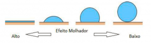 – Molhadores: também chamados de agentes tensoativos, os molhadores são aditivos cuja função é reduzir a tensão interfacial banho/cátodo ou cátodo/gás. A diminuição dessa tensão possibilita que o líquido do banho consiga penetrar em todas as partes da peça a ser banhada, conforme é possível observar na Figura 3.